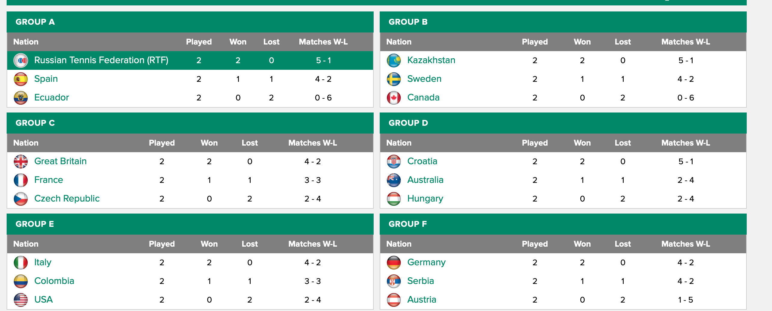 Look at the columns. They show "no" losses in one column, but a loss in another. Start at the Top: Russia: Played 2, won 2, then in the W/L column, 5-1. WTF? And it goes on from there. Also, I was looking at live scores today, on their website, and they had a "Tiafoe, Alpha Frances" playing a match today. Someone tell me where else Frances Tiafoe's first name has ever been recorded as "Alpha?" It's just completely weird, and incomprehensible, and they really don't try to make it user-friendly. I can't see who played whom, nor how anyone really did.