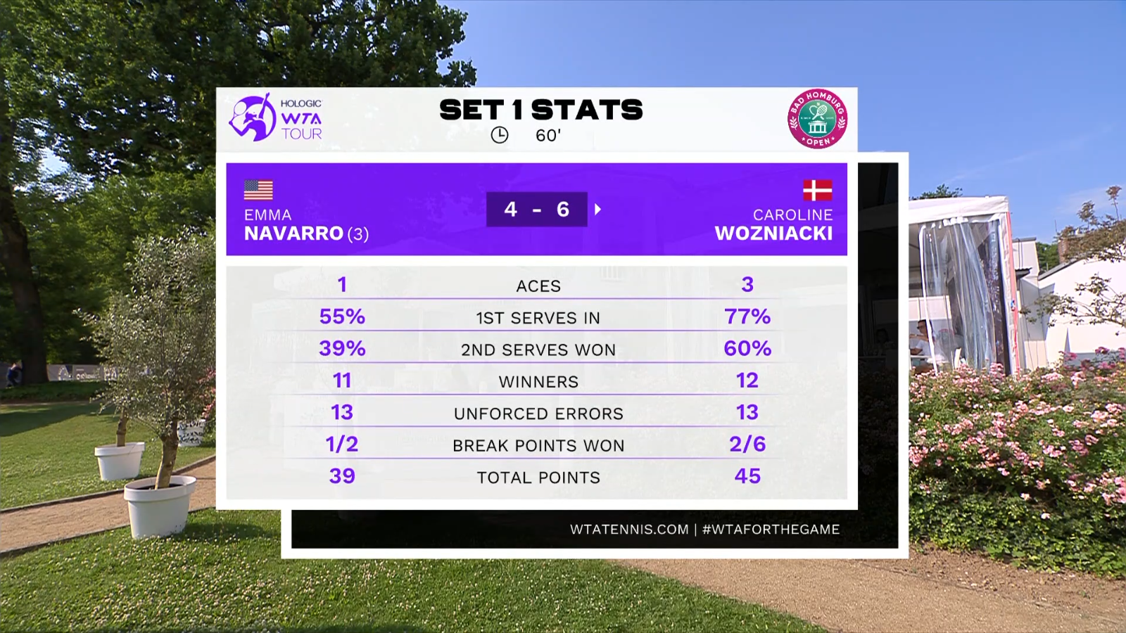 And as i predicted - second set was a different affair after Caros fall in first set. Second set 6-1 to Navarro. And Woz retired after first game in third set