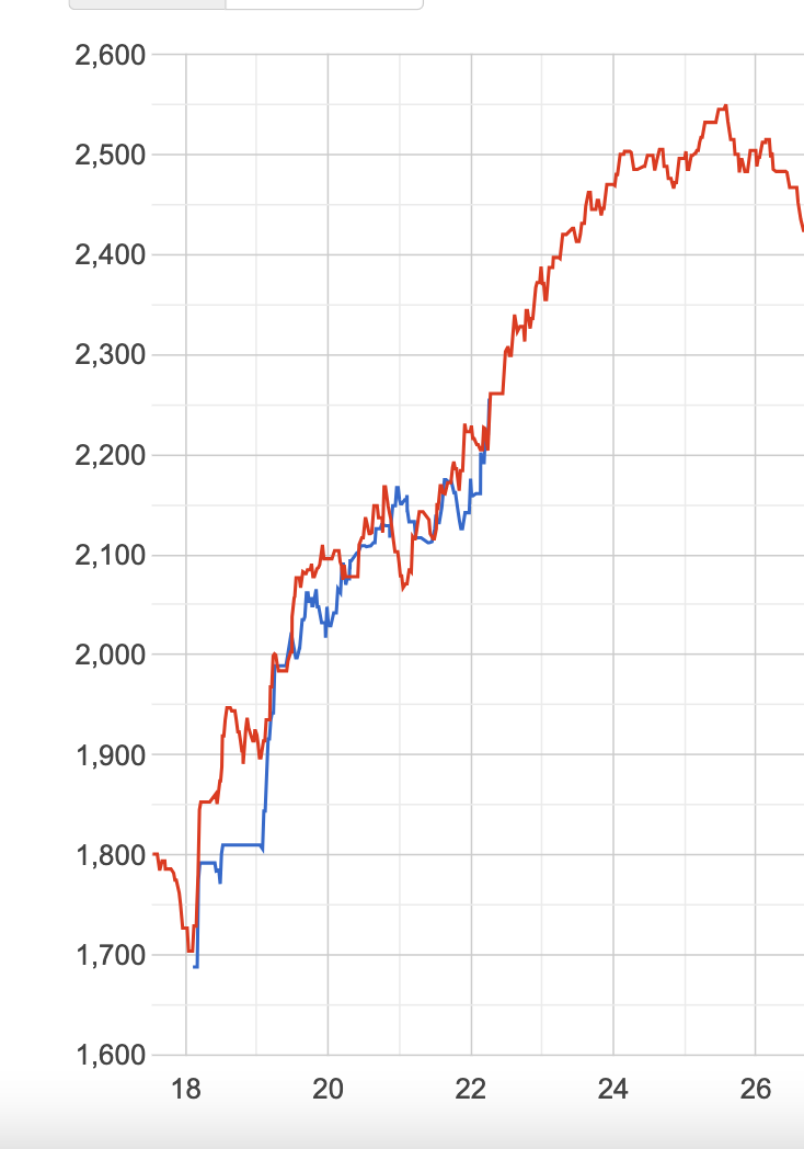 So now Jannik is a bit over halfway to 23 and probably around 2350 now, so he's really closely following Roger's path. Will be interesting to see high he goes.