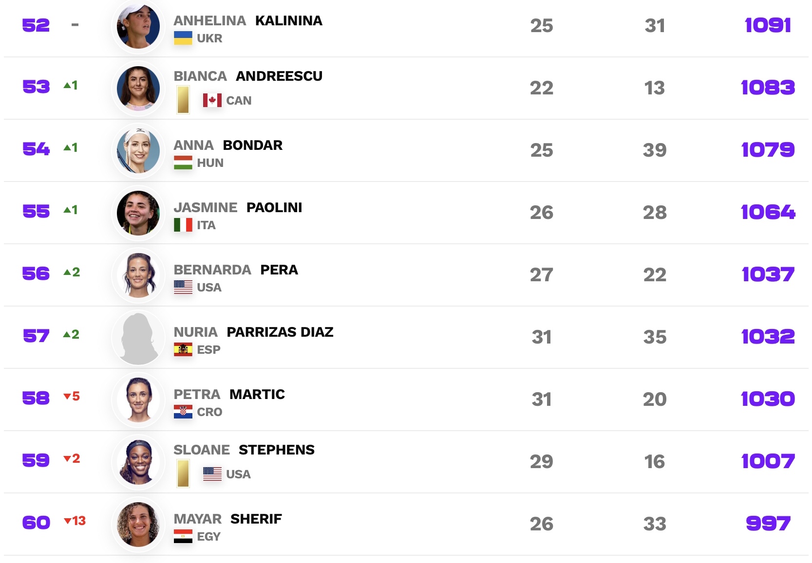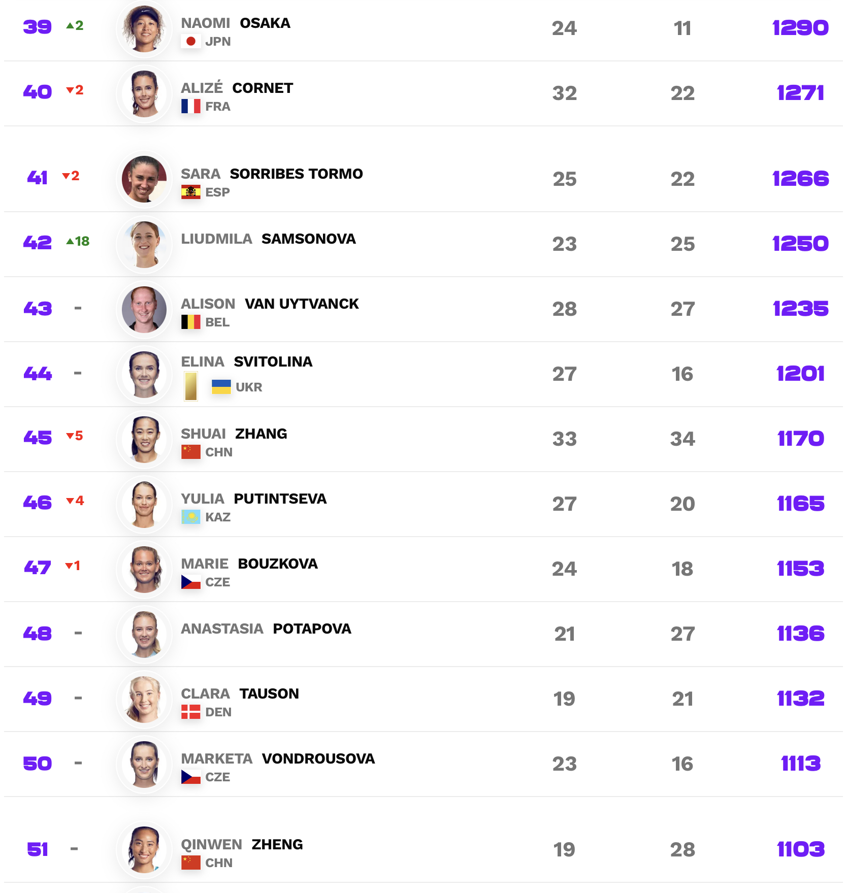 What's her ranking right now? She outside the top 40?