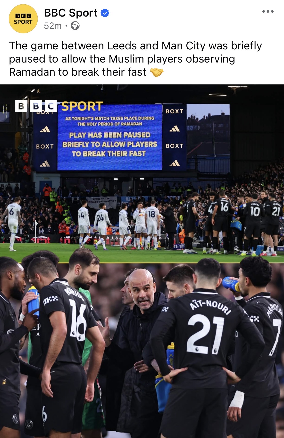 And there’s a very simple solution: when the ball goes out of play let the Muslim players leave the field to break their fast.
