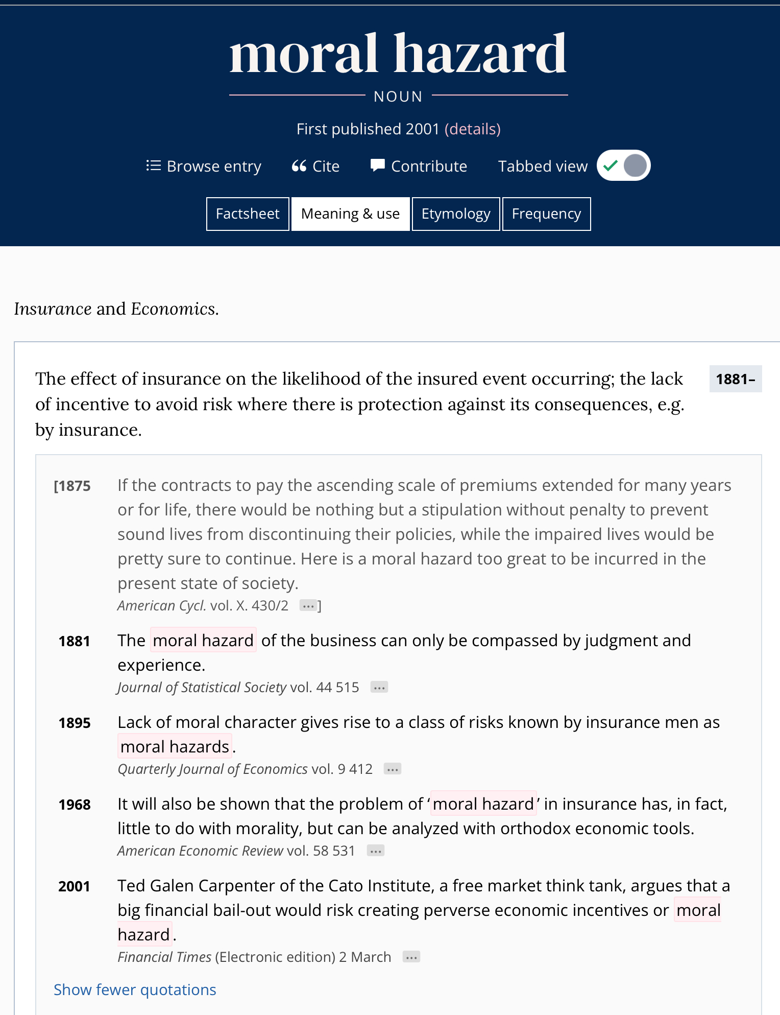 I just asked for clarification. One can't win! The words moral and hazard can be put together in a way that a non-economist might interpret in a certain way. If they make up a jargon in your field, I think it would be kind to clarify. It's not "man-splaining" to be clear on terms. Don't assume that everyone works in your field.and if I had done that, no doubt I would have been mans-plaining? Be honest...![]()