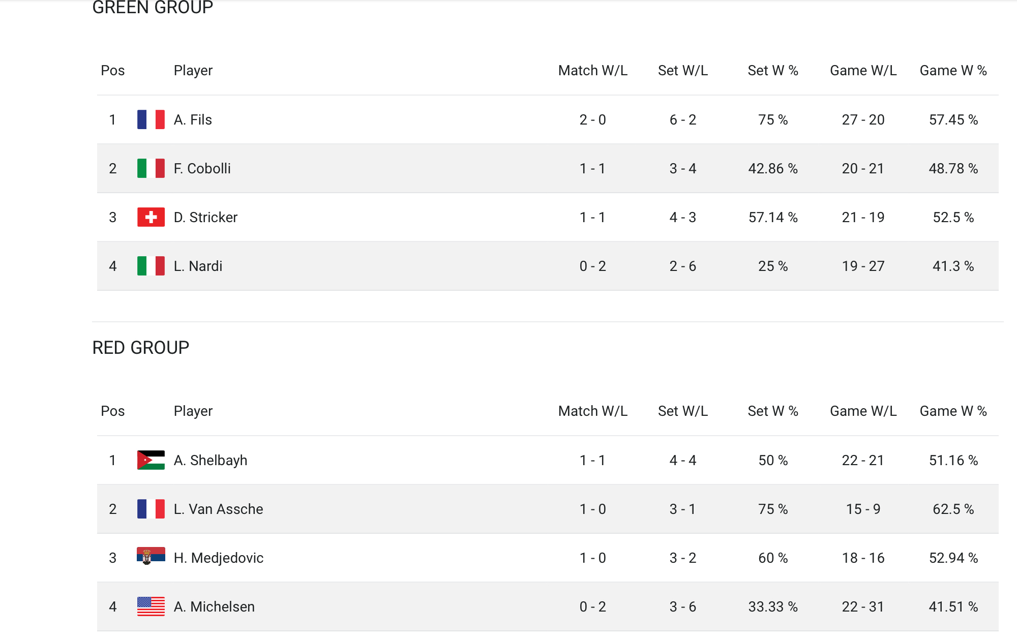 that's exactly right Mox. Between them tomorrow, whoever wins their RR3 match in straight sets will be the second in the group to advance to SF.I was thinking it could be because Cobolli beat Stricker in their match?