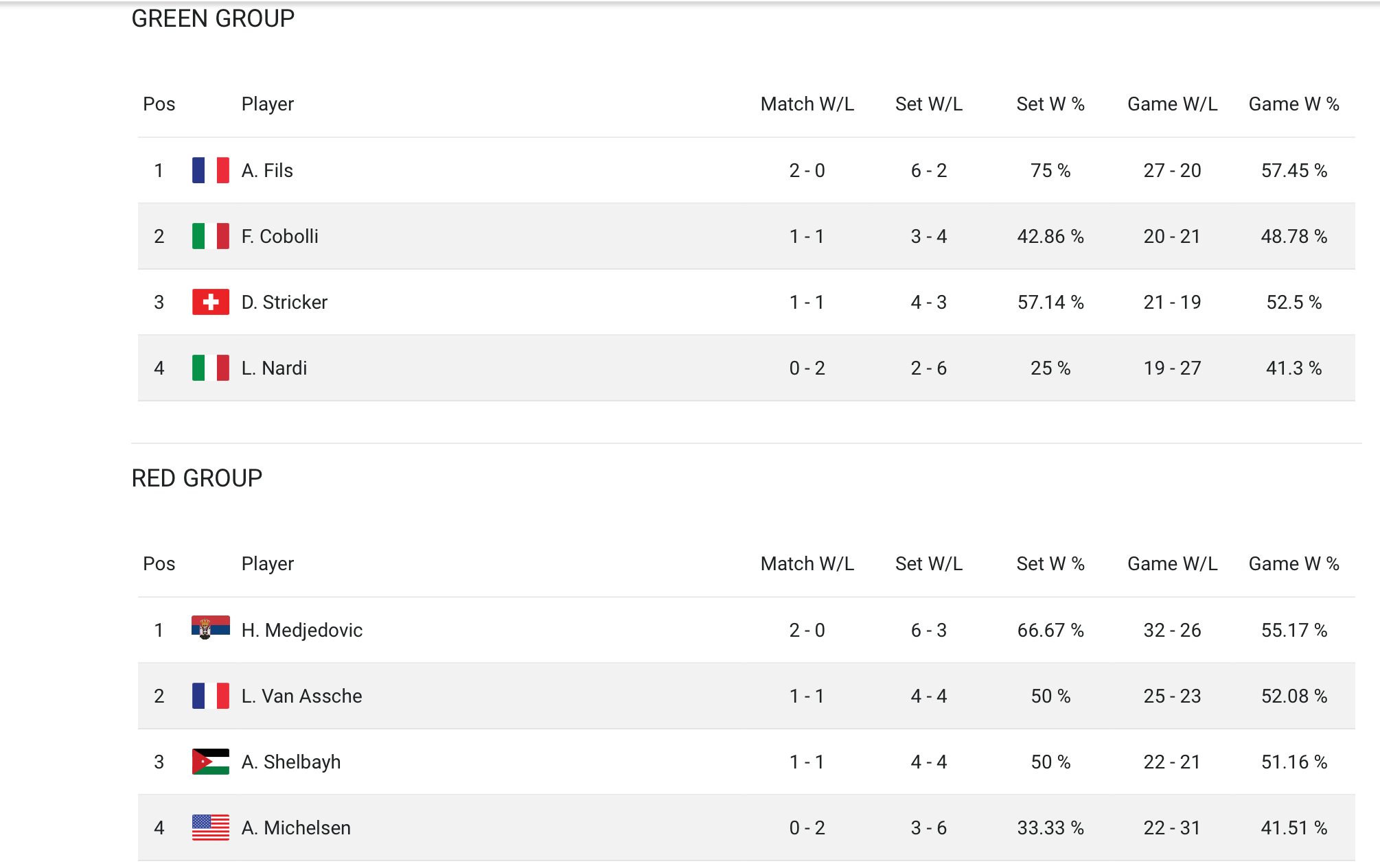 Cobolli lost in 5 to Nardi who couldn't advance anyway. Fils becomes the first SF. All Stricker has to do is win a set against Fils and becomes the second player to advance.