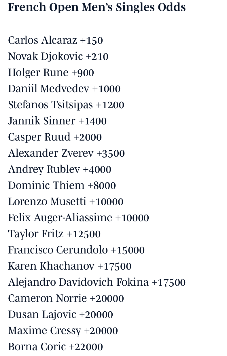 Yes, there is a lot at stake, and I agree with all who say that Novak is the biggest challenge in the tournament, esp. at this high water mark. However, it's Novak who's got the pressure of what's at stake, at 36...window is closing. Alcaraz, even more than most of the youngsters, seems to handle pressure very well...his whole future yawns in front of him, and he plays like he has all the time in the world to accomplish big things. We'll see on Friday. Still, I know what you mean: If you come for the King, you best not miss.
