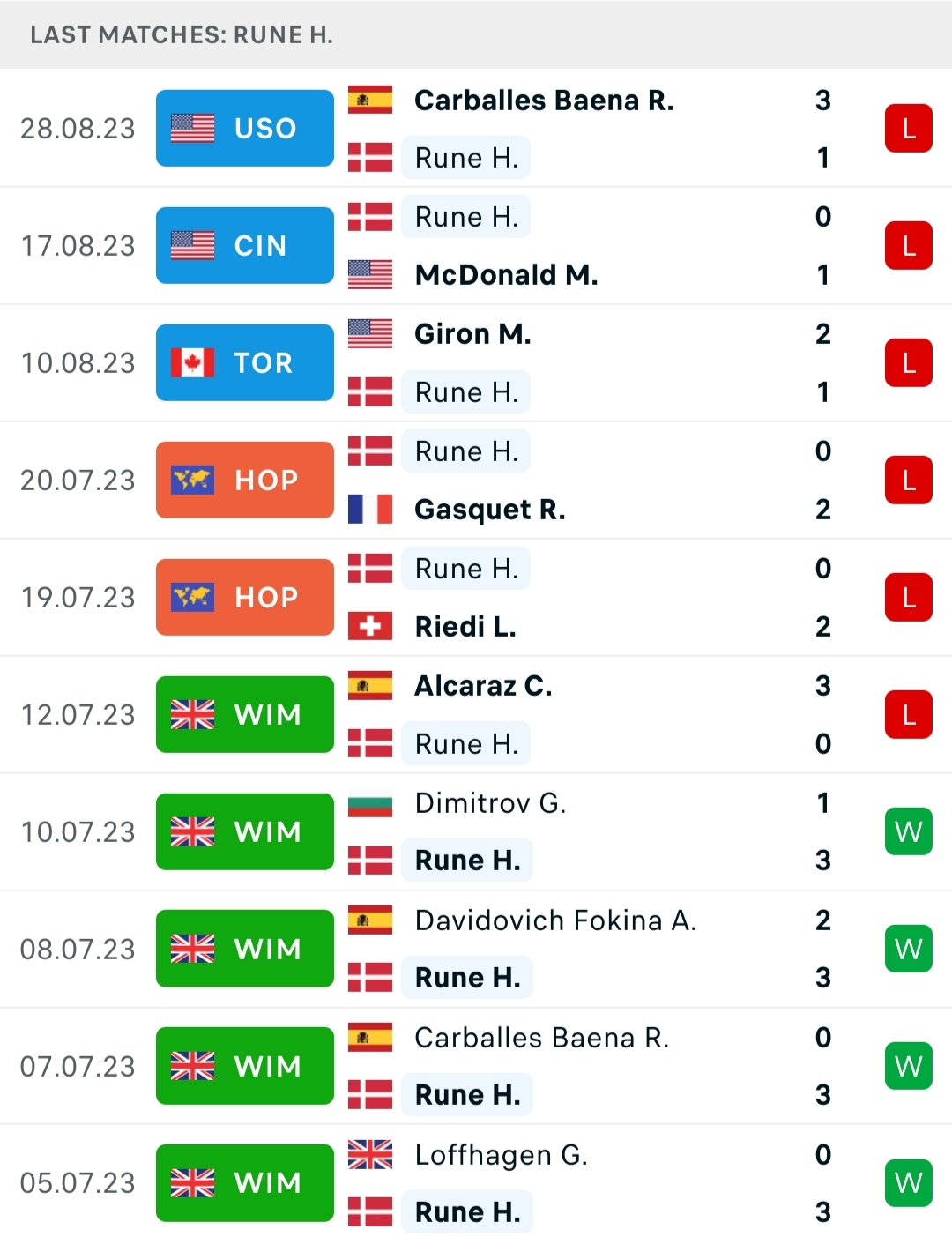 I tought Baena is a classic clay courter. I just looked him up, he hasn't played a single HC match during US summer until now. Type of player that Rune should be able to put down, in fact perfect opponent in R1 for Rune who is struggling with form (or health too?). He hasn't beaten anybody since Dimitrov in Wimbledon.