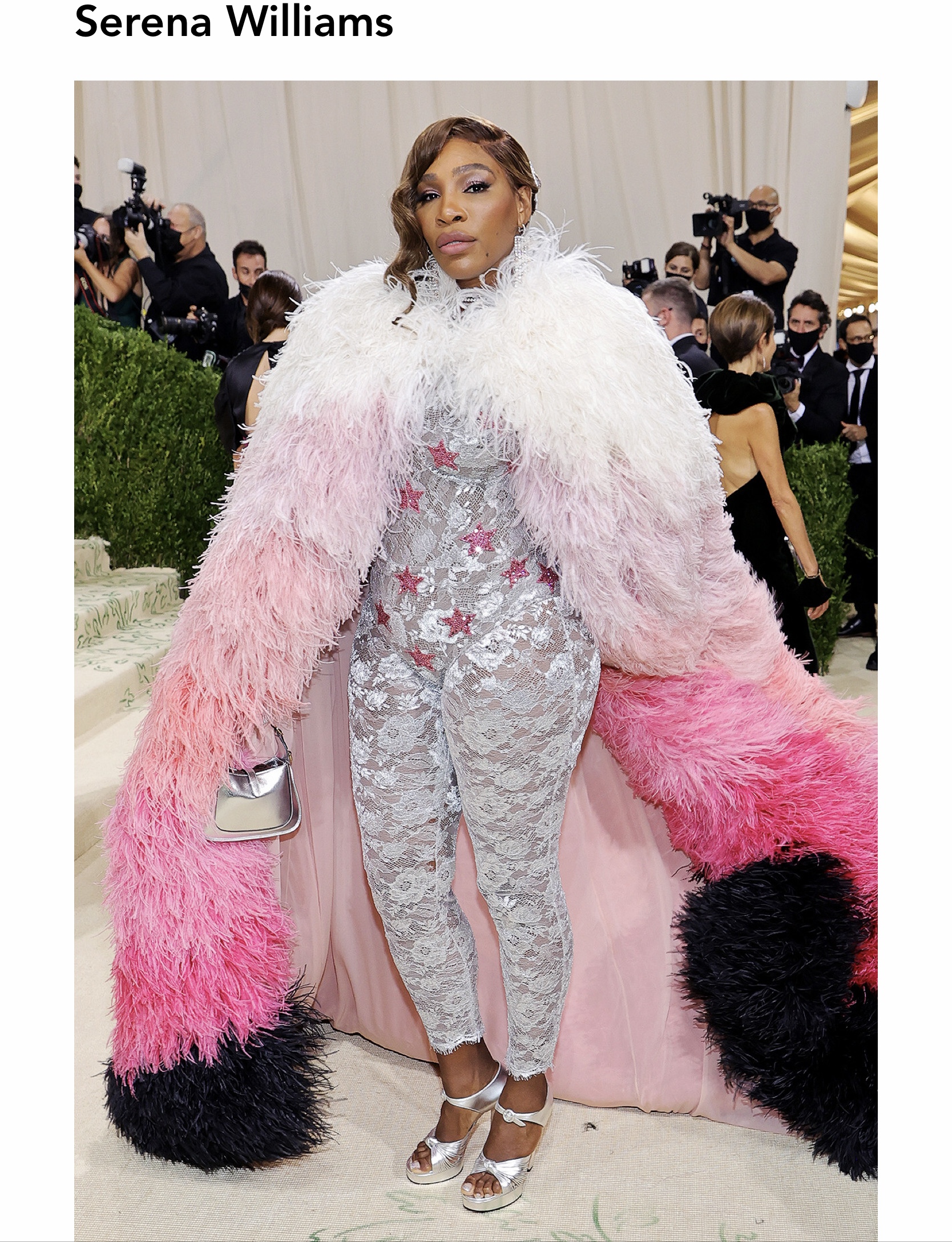 Not a fan of Serena's get up this year. The jumper is probably OK, but that over the top covering, looks like she slayed a few too many flamingos at the zoo so she could go to the MET party. :negative: She's rocked it in the past, but this year, not so much.